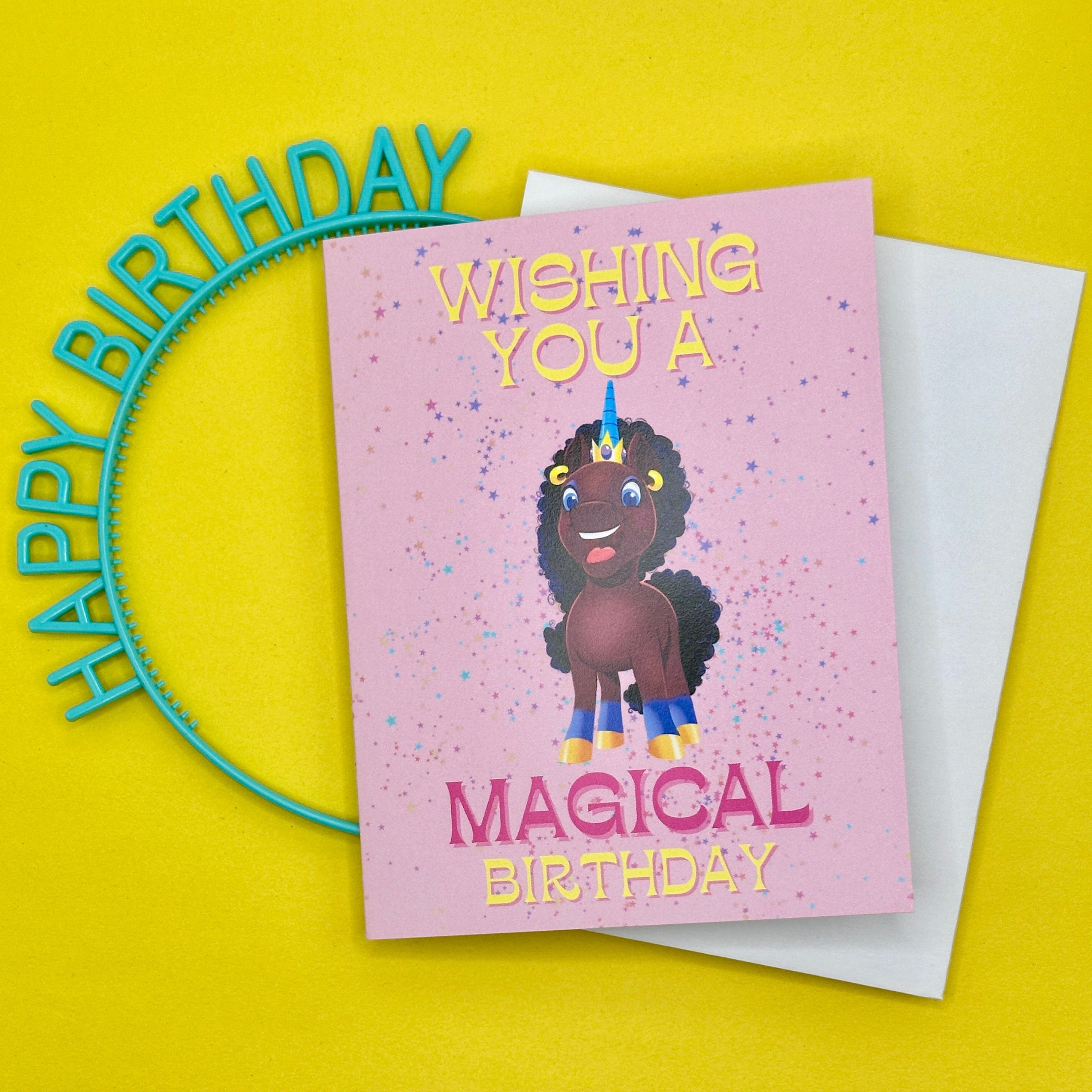 Afro Unicorn Happy Birthday Card
