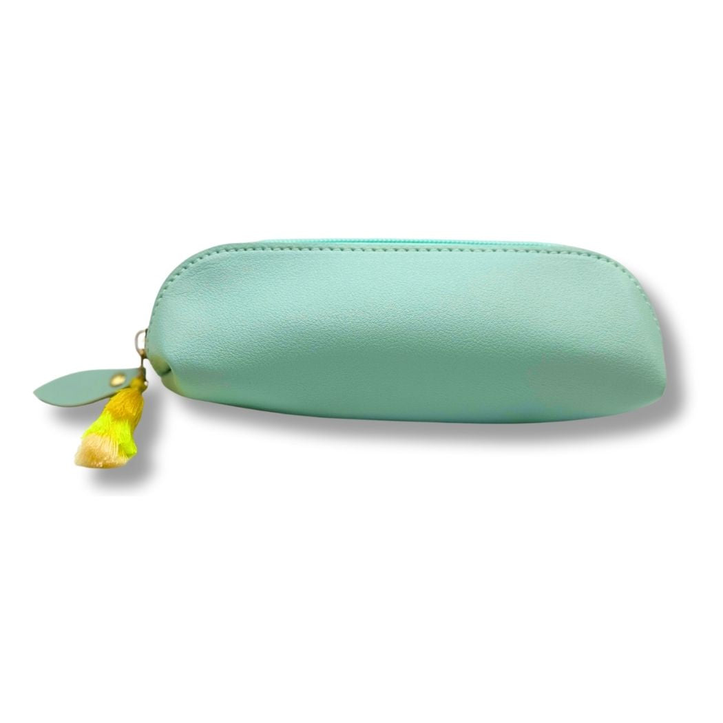 Add a splash of color to your carry-all routine with our light blue vegan leather pencil pouch. It’s fresh, playful, and made for those who like their workspace a little brighter.